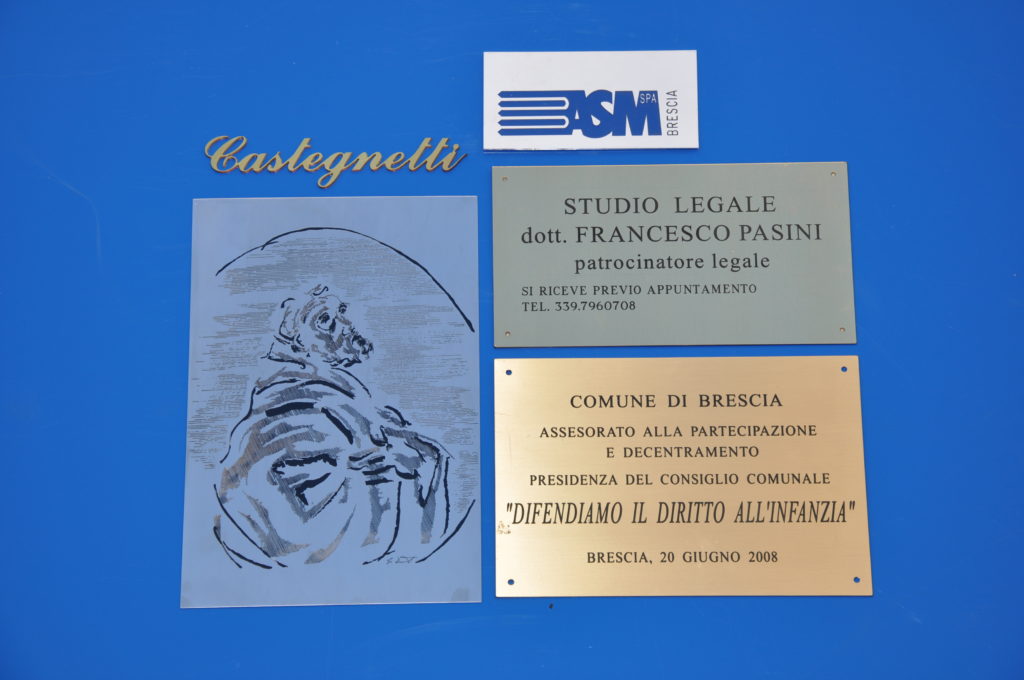 Tecnica che consiste nell'asportare del materiale con uno strumento a punta su una superficie rigida in modo da formare un disegno o un simbolo. Offrono un’ottima durata nel tempo e si adattano sia alle strutture moderne sia a quelle tradizionali, sia da interno che da esterno.